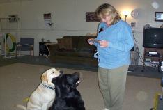 exchange for a desired behavior. This can be called a "learn to earn" (which if done correctly is different from bribery) and sit to say "please" program of deference in their dog's day-to-day life. People are then teaching their dog to be a well-behaved member of the family without force or aggression. People can be loving and affectionate all while setting limits and following through on consequences. 2) Teach new commands in ways that make sense to their dog. Once the command is learned and strengthened in various circumstances, (i.e. proofed) a command is given only once. 3) Learn how to know when not enough is being asked of their dog and to know when something is too far beyond their dog's skill set and will end up in frustration and failure. Train step-by-step - building upon success. 4) Understand and effectively use reinforcement, punishment and prevention in humane ways. 5) Use attention work effectively, even with distractions. 6) Learn how to improve their timing of feedback to their dog. Use proactive training, instead of reactive training, which happens after the fact. With proactive work, owners anticipate their dog's next move and begin to affect their dog's thought before the dog fully carries out the thought into action. |